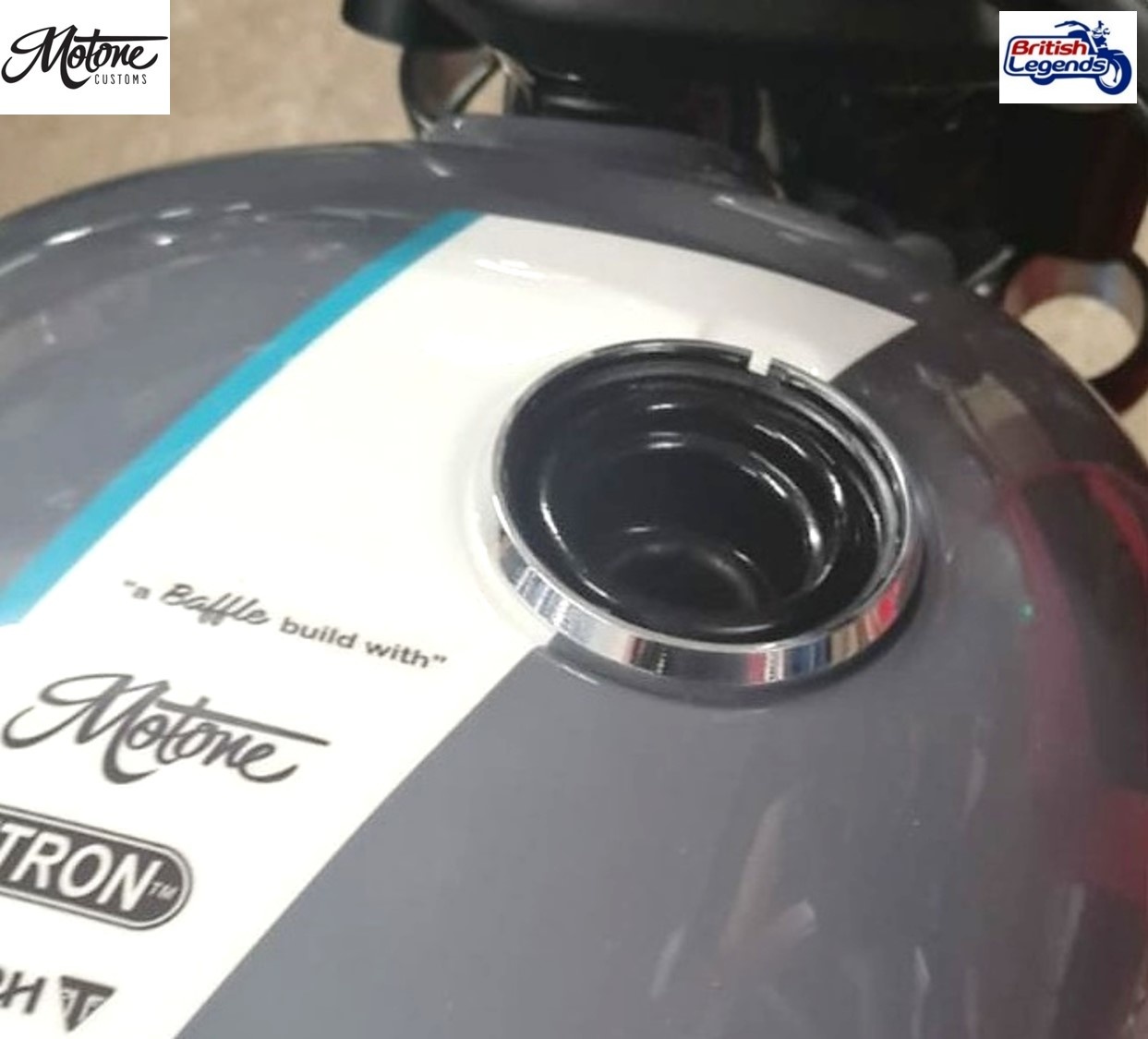 Adapter required to fit a Motone fuel cap to Triumph Thruxton 1200, Speed Twin or Scrambler 1200 (these bikes have a specific tank opening).