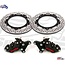 Calipers + pads + brackets + 320mm floating* discs to replace the original fixed discs for a stronger braking and more durability.