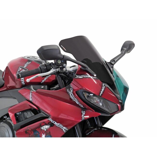 Dark grey "double-bubble" flyscreen for Triumph Daytona 660 (2024+), for better rider protection & looks.
