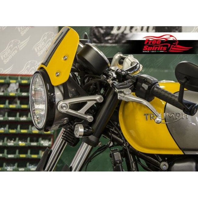 Note on Bonneville, Thruxton and Scrambler : requires moving the ignition key (kit available here) and the removal of the original headlight brackets (see alternative headlight kit here).
