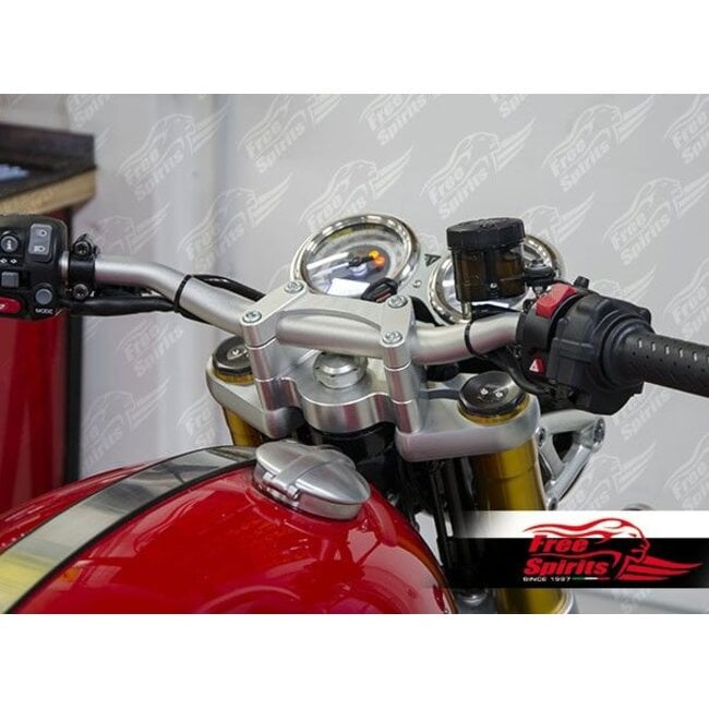 Handlebar not included - For handlebars up to 730mm (29") wide, the original brake hose and cables can be reused. For wider bars, the clutch cable needs to be replaced with the longer one from a Bonneville T120, and you need to order the optional brake-hose extension.