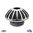 Lathe turned out of solid aluminium, black epoxy-painted (powder-coated with grained aspect). Designed for hand-tightening.