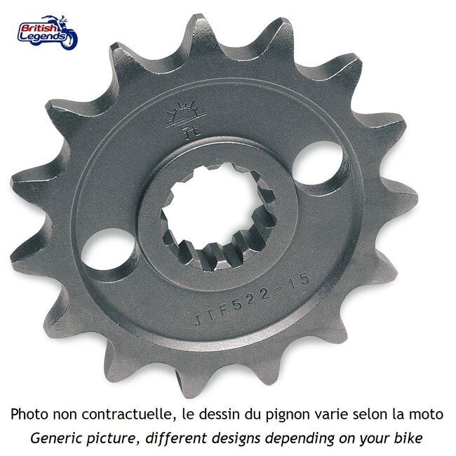 Replacement front sprocket for Triumph motorcycles: alternative sizes from 14 to 19 teeth for a shorter or longer drive.