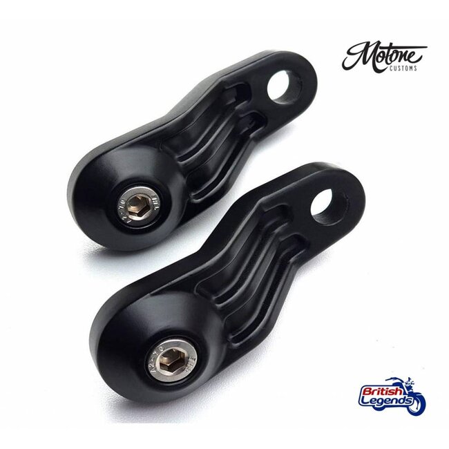 Pair of indicator brackets to relocate the rear indicators to the top of the dampers. The turn signals are positioned under the edge of the seat, and so do not interfere with the presence of a passenger.