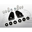 Se suministra con tornillos de repuesto de acero inoxidable y con un juego de embellecedores de fijación de amortiguadores (ver fotos).