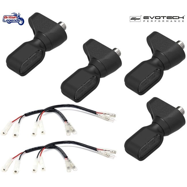 Juego completo de intermitentes LED muy compactos, especialmente diseñados para su montaje en los puntos de fijación dobles de los intermitentes originales de los modelos Triumph mencionados anteriormente.