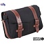 Loneta de poliéster de alta resistencia repelente al agua de color negro (caqui como opción), con refuerzos de piel de color marrón oscuro.