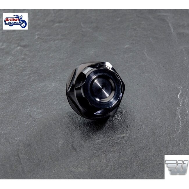 Mirilla de aceite maquinada a partir de un lingote de aluminio sólido.