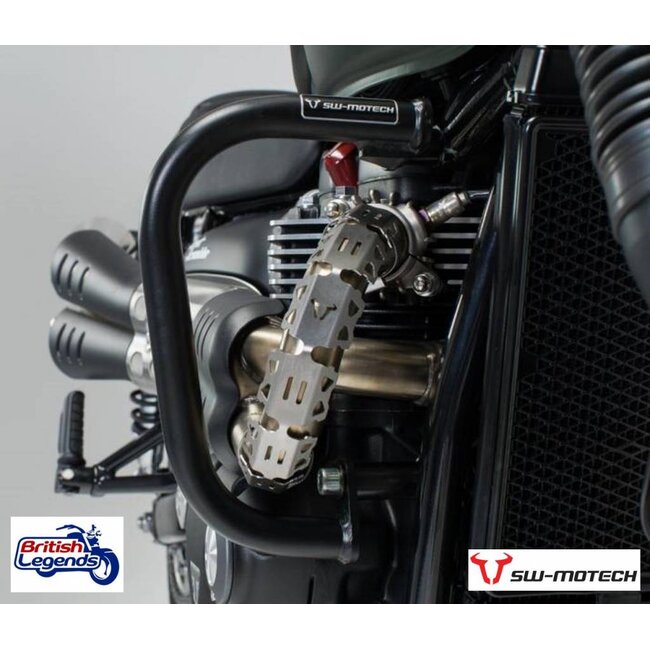 Paire de barres de moteur en tubes d'acier de diamètre 27mm, finition noir satiné (même aspect que le cadre de la moto) par peinture cuite au four.