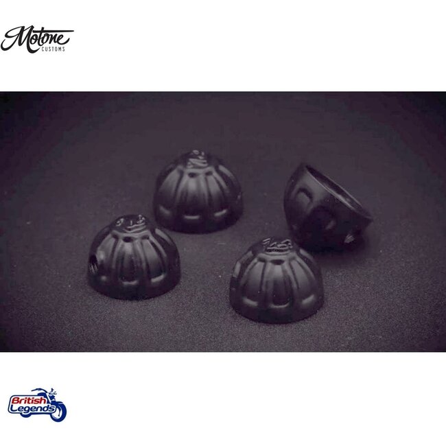 Jeu de 4 capuchons en métal massif forgés à partir de blocs d'aluminium/laiton, finis et polis à la main.