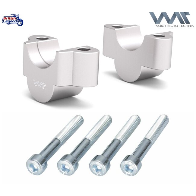 Paire de rehausseurs de guidon permettant de surélever le guidon de 25 mm pour une position de conduite plus confortable, notamment pour les pilotes de petite taille. Ils se fixent entre les pontets d'origine et le guidon.
